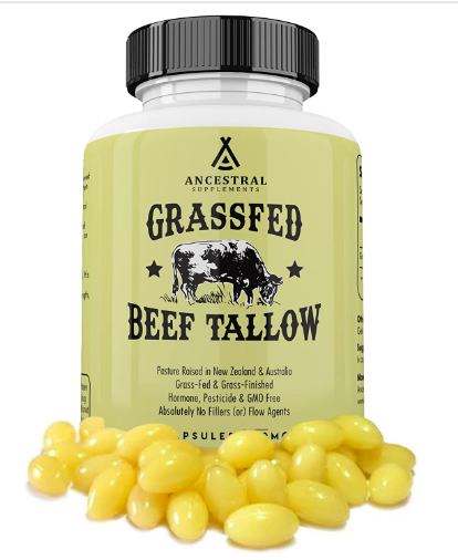 Ancestral Supplements Grass Fed Beef Tallow Capsules, 3000mg, Nourishing Kidney Fat Supplement that Supports Bones, Teeth, Gums, and Skin