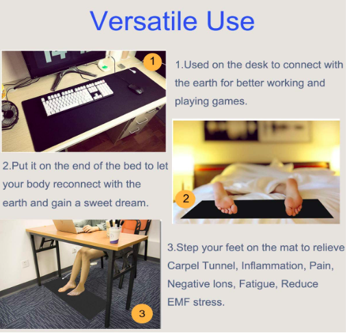 Earth Connected Universal Grounding Mat 40" x 12" Large Grounding Therapy Mat Computer Mouse Pad Health Protection Reduce Stress, Inflammation, Pain, Fatigue Sleep Better.
