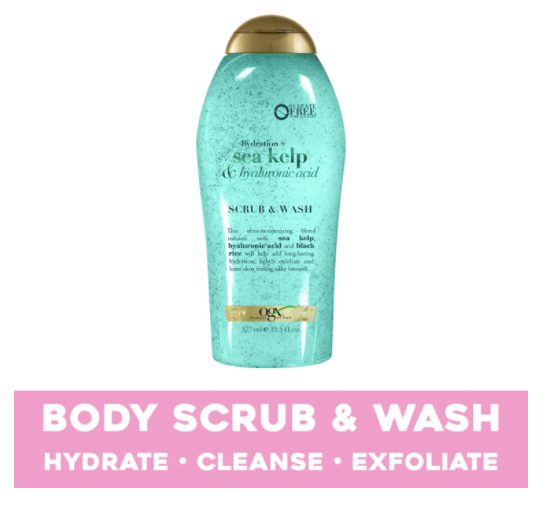 OGX Sea Kelp & Hyaluronic Acid Body Scrub & Wash is a nourishing combination of sea