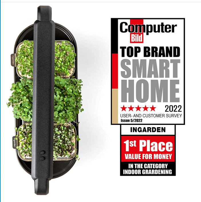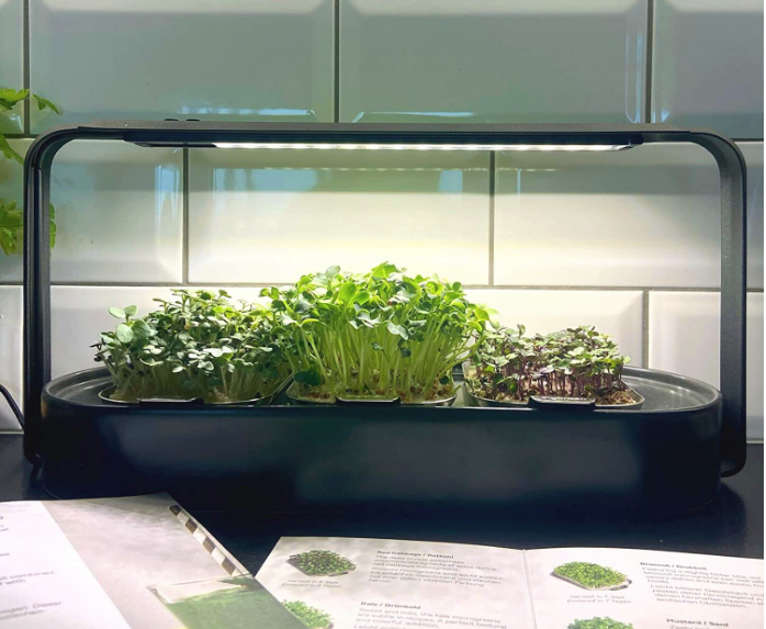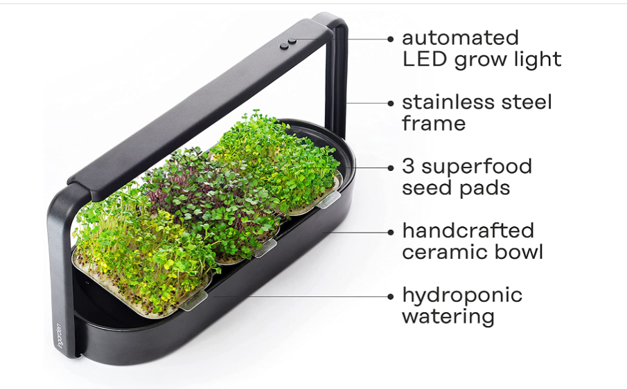 Via stylish in-house zen garden, Superfood grow Microgreens Indoor Growing Kit with 3 Starter Seed Pod Trays and Grow Light, Smart Indoor Garden (Ceramic) | Jet Black to blend right in