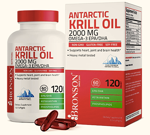 Bronson Antarctic Krill Oil 1000 mg with Omega-3s EPA, DHA, Astaxanthin, and Phospholipids 180 Softgels (90 Servings)