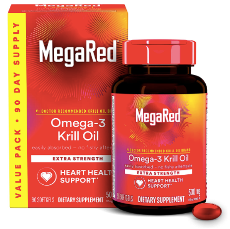 Antarctic Krill Oil 500mg Omega 3 Fatty Acid Supplement, MegaRed Extra Strength EPA & DHA Krill Oil Softgels (90-count box), Antioxidant Astaxanthin, Heart Health Supplement With No Fish Oil Aftertaste