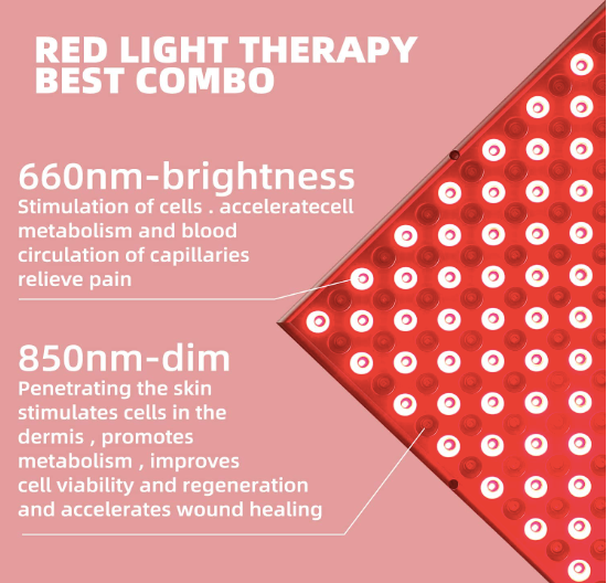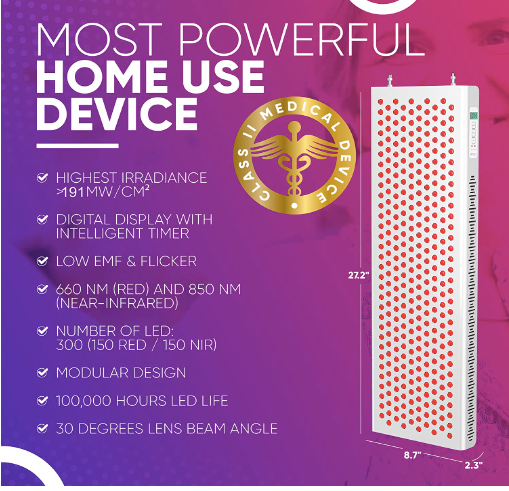 It has a deep wavelength of 660 and a near-infrared wavelength of 850 nm for deep tissue work at home.